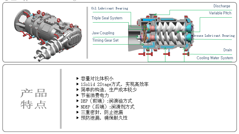 l 泵體內僅兩個螺桿轉子運轉,螺桿之間及螺桿與泵體之間無接觸