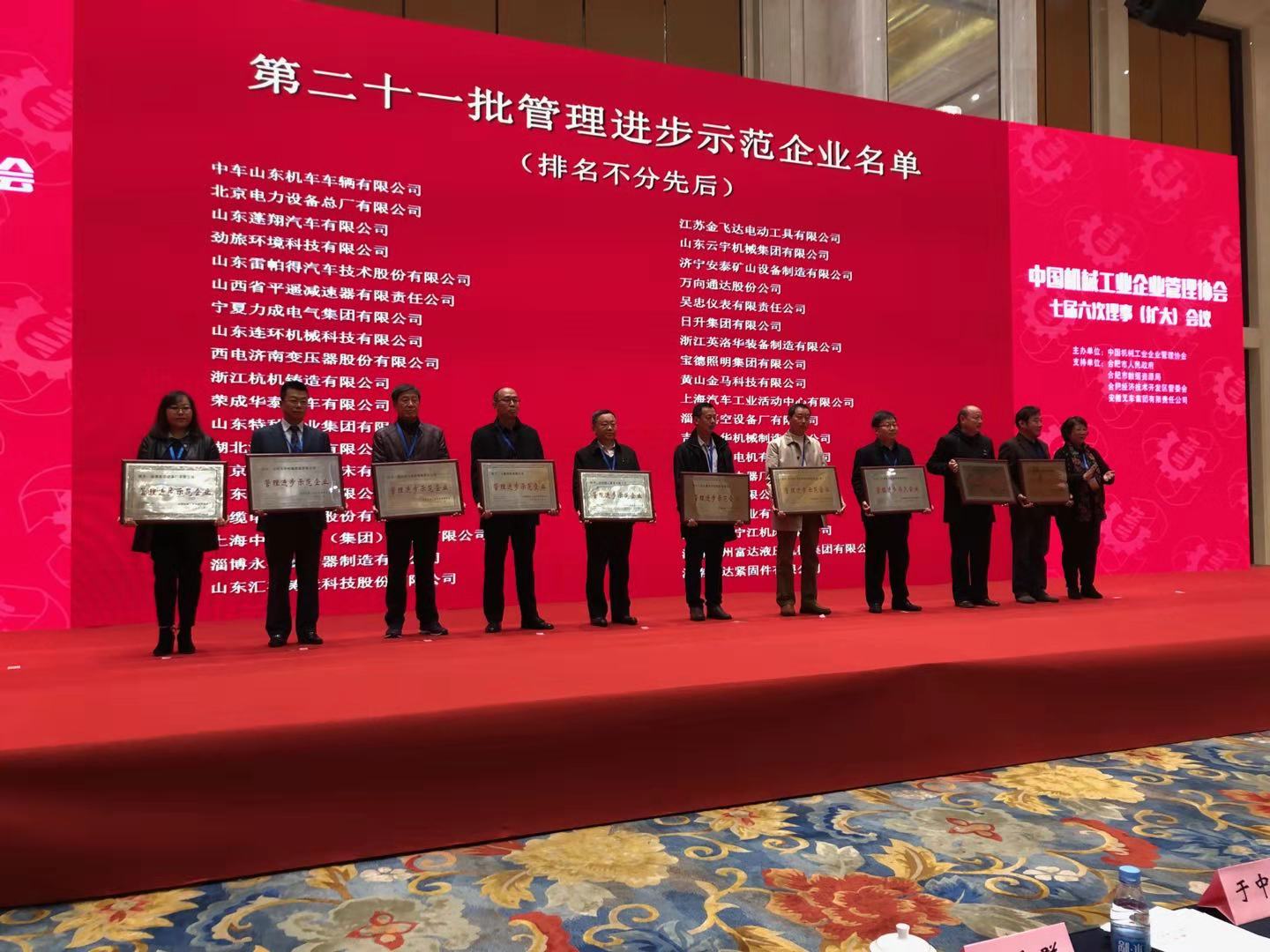 公司再次榮獲“中國機械工業管理進步示范企業”稱號