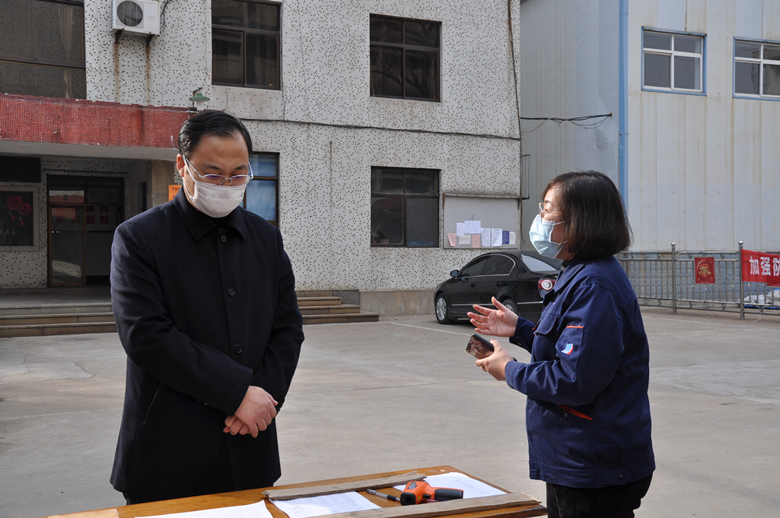 疫情無情人有情,眾志成城渡難關。抗擊疫情,舉國都是一家人,自疫情發展以來,區委區政府、辦事處的領導不止一次的來到企業,了解公司的實際情況。2月8日城西辦事處領導積極主動與企業聯系,嚴把企業復工前的疫情防控關,為企業逐步恢復安全有序的生產經營環境提供有力保障。2月20日區委書記劉忠遠,組織部部長楊發磊一行先后蒞臨公司,實地調研公司的疫情防控和復工復產情況,聽取了公司疫情的防控介紹,了解企業生產經營、防控物資儲備情況,深入探討解決公司當前面臨的困難和問題。