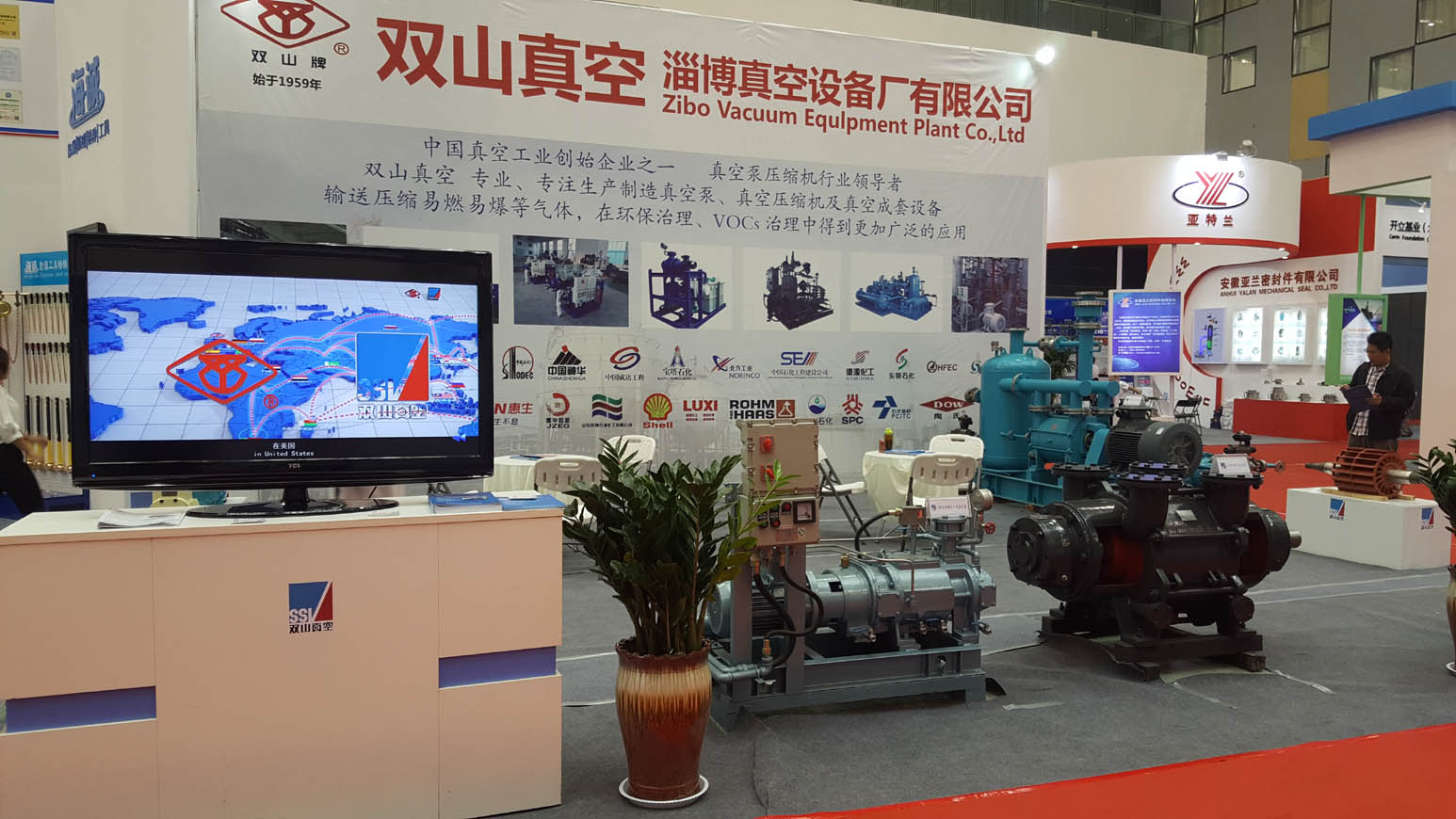 此次公司展示了多套達到國際先進水平的高端產品,如JSKA液環真空壓縮機組、EY26液環高壓壓縮機、GSP新一代干式螺桿真空泵等。